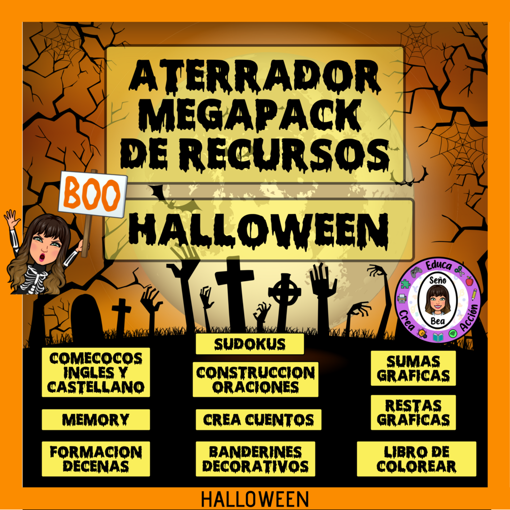 Para celebrar la festividad de Halloween en el aula os traigo un Pack de diferentes recursos y juegos para ponerlos en práctica en el aula.